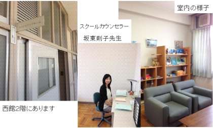 本校では、毎週水曜日にスクールカウンセリングを実施しています。生徒の皆さんはもちろんのこと、保護者のみな様の相談も受け付けています。お子様のことでご心配なことがありましたら、お気楽にご利用ください。