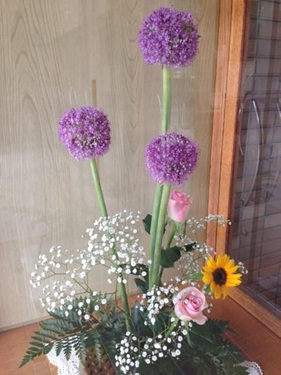 火曜日は玄関の生け花が新しくなります。ご近所にお住いの仁平さんに、ボランティアでいつも飾っていただいております。本当にありがとうございます。