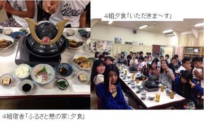 4組の宿舎「ふるさと憩の家」の夕食の様子です。ちょっとドタバタして、入館式の写真ありません。「ごめんなさい!」