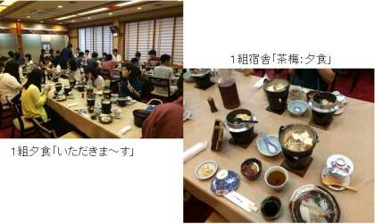 最後は1組宿舎「茶梅」の夕食の様子です。