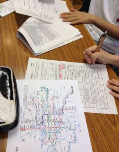 昨日は放課後に1、2組の班長と副班長(または代理)が残り、路線図と時刻表を使って細かな行動計画を作成しました。乗り継ぎの時間も考慮し、施設見学の時間を調整するのに苦労していましたが、どの生徒も真剣で頼もしく感じられました。今日は3、4組が残って同じ作業に取り組みます。