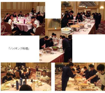 さて、夕食は「バイキング料理」。好きなものをたくさん食べて、今夜の「レクレーション大会」頑張ってください。