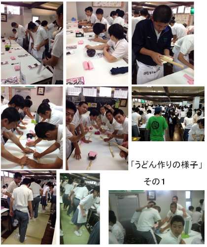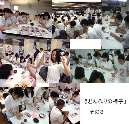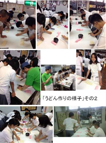 修学旅行(6月5日)6 公開日 2014/06/05 更新日 2014/06/05 お知らせ さあ、「うどん学校」に入学しました。 みんな、拍手で祝った後、すぐ製作開始です。 とっても楽しい司会の方の誘導で、みんな上手に生地をのばしてうどんを切っています。 中でも、音楽に合わせて足で踏む作業に全員大盛り上がりです。 いいね(0) 修学旅行