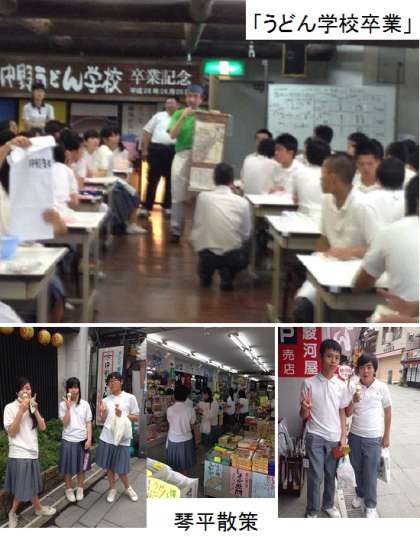 その後、最後の自由時間、琴平散策です。みんな、食べ歩きもマナーを守り、楽しんでいます。