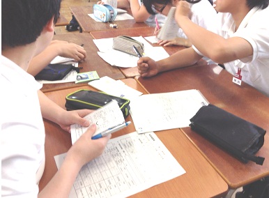 昨日、一昨日に、班長と副班長で利用する電車の時刻などを調べて班活動の詳細を決めました。今日の6限目は、その内容を班員に説明し、班で打ち合わせをしました。