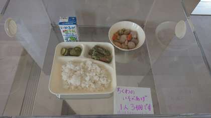 ちくわのいそべあげ・鶏肉とさといもの煮もの・