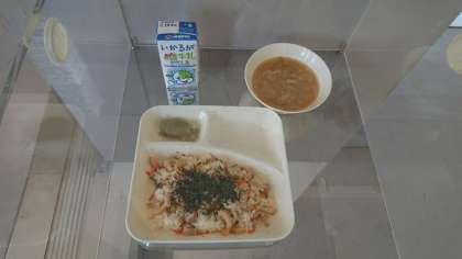 メニューは、 かやくご飯・みそ汁・まっ茶ういろう 牛乳でした。 ごちそうさまでした。