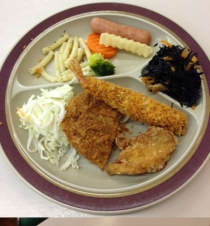 夕食タイム!メニューはミックスフライです。もりもり食べましょう。