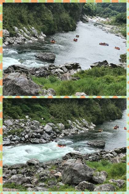 ラフティングの様子part3 公開日 2018/06/07 更新日 2018/06/07 お知らせ 順調に進んでいくと、、、 流れの激しい瀬がありました!写真はゴール手前の最後のポイントです。 いいね(0)