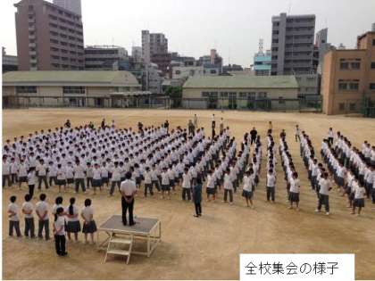 毎週月曜日は、全校集会の日です。遅刻する生徒もなく、全員が8時30分までに整列できました。大変良かったです。続けていきましょう。