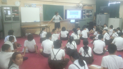 授業の対象は小学校6年生。小学校の先生のユニークなアイデアに中学校の教員も非常に勉強になる参観でした。また、児童も活発に授業に参加しており、英語を楽しく使っていました。