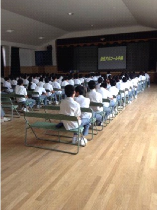 例年、夏休みには中学生の喫煙や飲酒といった事例が報告されています。各ご家庭におかれましても、タバコやお酒を勧められても「絶対に」吸わない、飲まないという意思を強く持てるよう、ご指導をお願いします。 (2年生学年会)