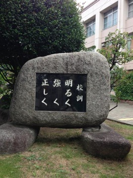 さて、先週金曜日に本校PTA実行委員会出身者で構成されている「白鳩会」総会が行われました。その席で、「HPをいつも読ませていただいている。」「学校の様子がよくわかります。」と感想を述べられていました。また、正門の石碑の話題になり、創立50周年を記念して平成9年に建てられました。改めてご紹介いたします。