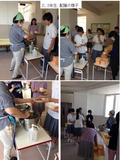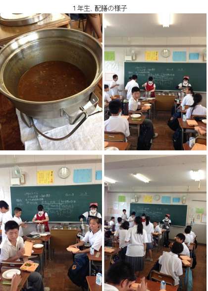 給食(カレーライス) 公開日 2014/07/08 更新日 2014/07/08 お知らせ 月に1回、給食がカレーライスの日です。先月からレトルトカレーから、食缶に変わっています。先月は、1年生が一泊移住、2年生が校外学習であったため、1,2年生は初めてです。2,3年生は選択制であるため、食缶をエレベーター前に置き、教員が入れました。1年生は各教室で、先生が給仕しました。 いいね(0)