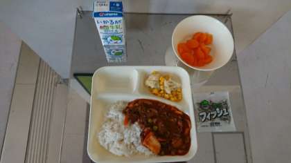 みかん(缶)・ミニフィシュ・ごはん・牛乳でした。