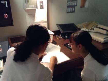 11時30分の開演から15時の終演まで、司会進行を本校放送部が担当しました。部員たちは、アナウンス原稿が完成した数日前から練習を始め、本番中も舞台そでで原稿をじっと見ながら確認をしていました。