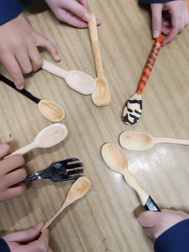 ヒノキを削ってスプーンを作りました。