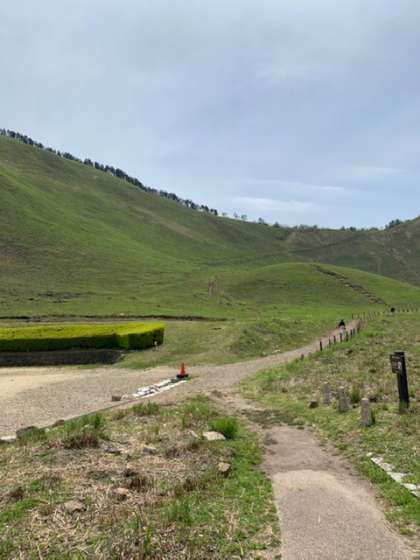 1年生、班で協力して山登り中です。