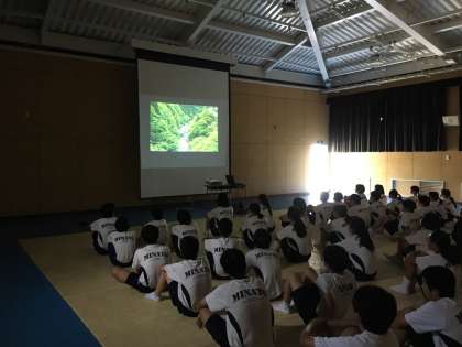 3年生は総合の時間を利用して、修学旅行のDVDを見ました。修学旅行中の写真もとにDVDを作成しました。