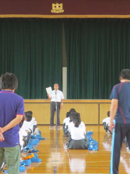 今日(16日)は、1学期最後の全校集会がありました。