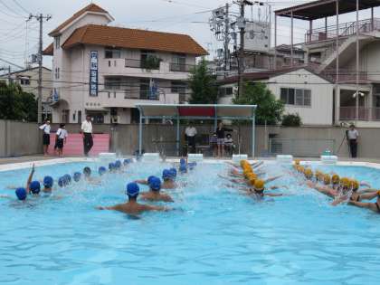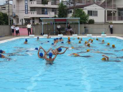 をしました。水面を強く叩き…音楽に合わせて演技をしました。