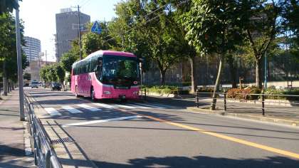 参加者のPTA会員様をバスに乗せ、中学校を出発しました。