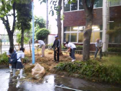 3 環境整備、緑化活動の支援では、ひまわりなとの水やり、雑草抜き、玄関付近花壇の手入れなと清掃活動もあります。秋に向けて種、苗の回収もします。
