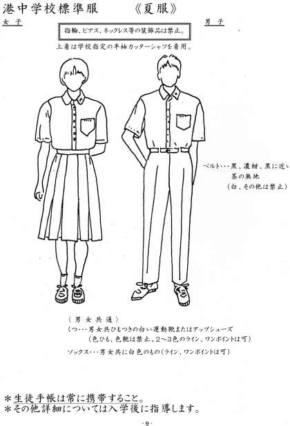 カッターシャツに「組章」の付け忘れや「生徒手帳」の入れ忘れがちですので、気をつけてください。