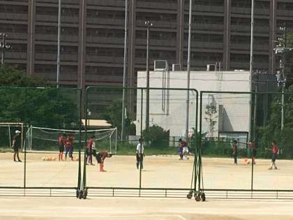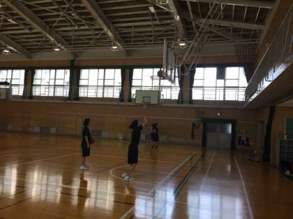 本日、港中学校ではグラウンドでサッカー部とソフトテニス部が、体育館では女子バスケットボール部が練習を行っていました。