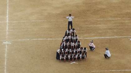女子は六段ピラミッド 吹奏楽部が今年も昨年以上に大活躍をしてくれました。