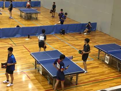 卓球の試合に港中学校3年生が挑戦しています。がんばれ港中生。