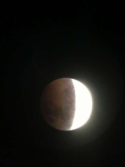 理科の斉藤先生も…天体望遠鏡とカメラを持参し、月食のシャッターチャンスを今か今かと待っていました!