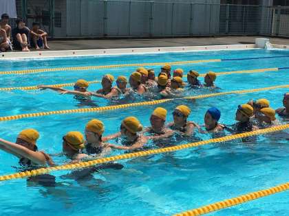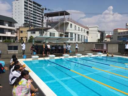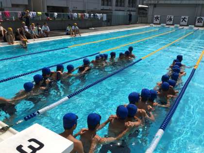 先週、雷のため延期になっていた水泳大会の続きを行いました。