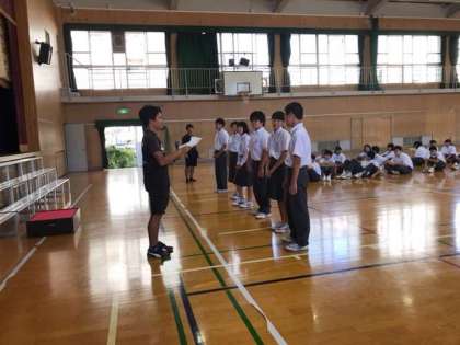 2年生のスピーチコンテストの表彰が行われました。学年代表として文化発表会当日に発表します。学年の代表です。みんなで応援していきましょう。学年代表に選ばれた2人は当日元気いっぱい発表をしていきましょう。