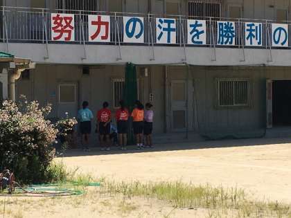 ソフトテニス部と女子バスケ部が練習を行っています。