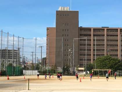 野球部、サッカー部、ソフトテニス部、女子バスケ部が朝練を行っていました。