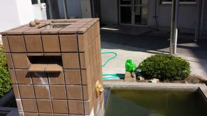 鍛えの夏、野外活動部はライオンの噴水と小池をピカピカにしました。ヘドロとその匂いに負けずがんばりました。おまけに噴水の上に団子を二つ作りました。