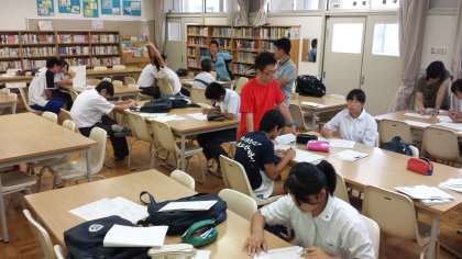 午前9時から図書室で午後4時ころまで学習会をしています。