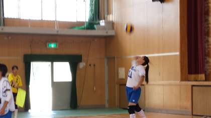 第一試合は、東大阪市花園中学校と対戦、第一セット25:15、第二セット25:12の2セットを勝ち取り2回戦に進出、相手は、西信達中学校で昼からです。