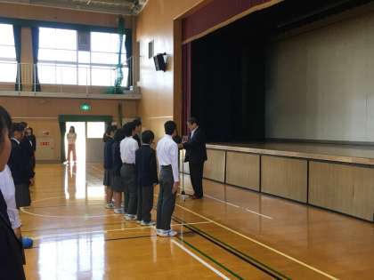 本日、全校集会にて生徒会・学級役員の認証式が行われました。
