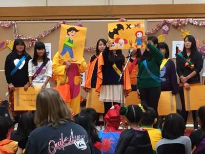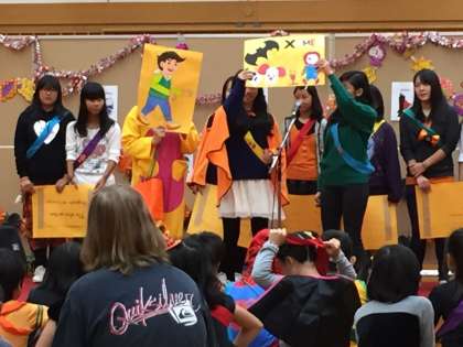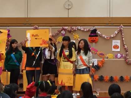 10月26日(日)大阪市中央体育館 剣道場でハロウィーンダンスコンテスト、留学生との交流に港中学校の生徒も参加しました。