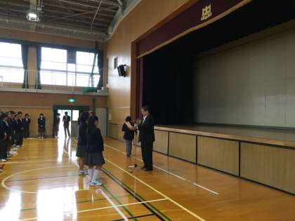 3年生の税の作文の表彰があり、校長先生からは税に関する話がありました。