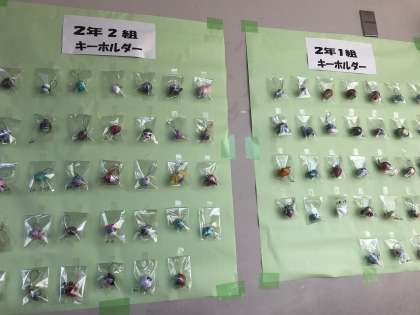 家庭科の授業でキーホルダーづくりに取り組みました。
