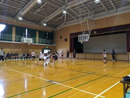 女子バスケットボール部は今日、港中学校にて合同練習を行いました。