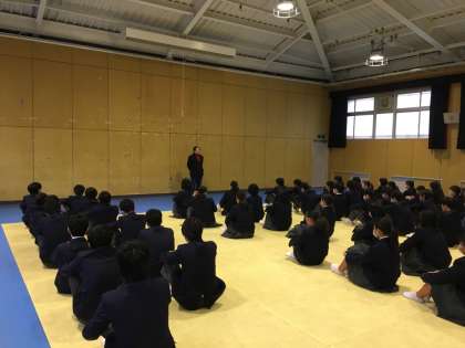 3年の学年集会では、週明けの私学入試に向けて体調管理をしっかりとすることと準備をしっかりとするという話でした。