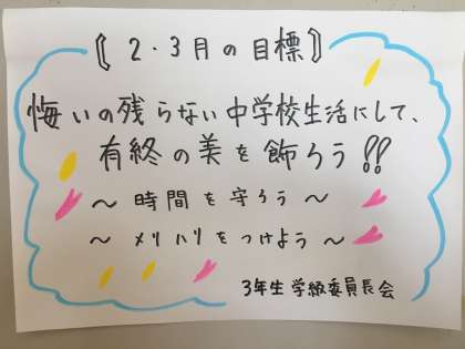 また、委員長会から残り少しとなった中学校生活をより充実したものにするための目標について報告がありました。