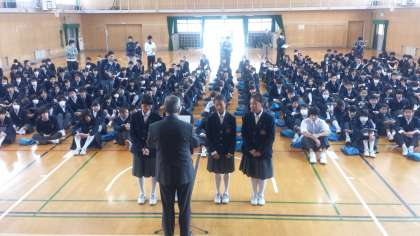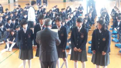 バドミントン、ソフトテニス、キックベースを本日表彰しました。