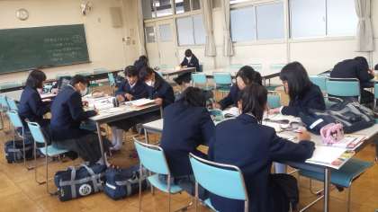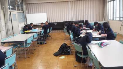 静かに自学自習を多目的室でしています。顧問は、上村先生です。