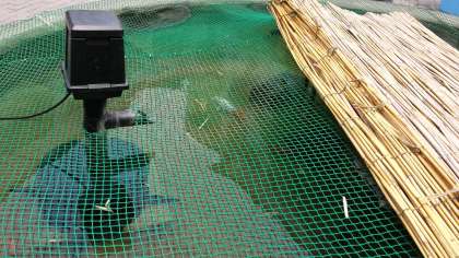 きれいな水を気持ちよさそうに、すいすいと泳ぐ鯉、金魚など