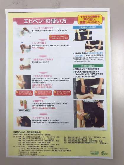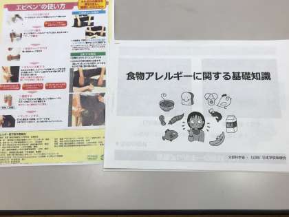 給食実施に際して生徒の安心、安全のために食物アレルギー、エピペン研修会を実施しました。